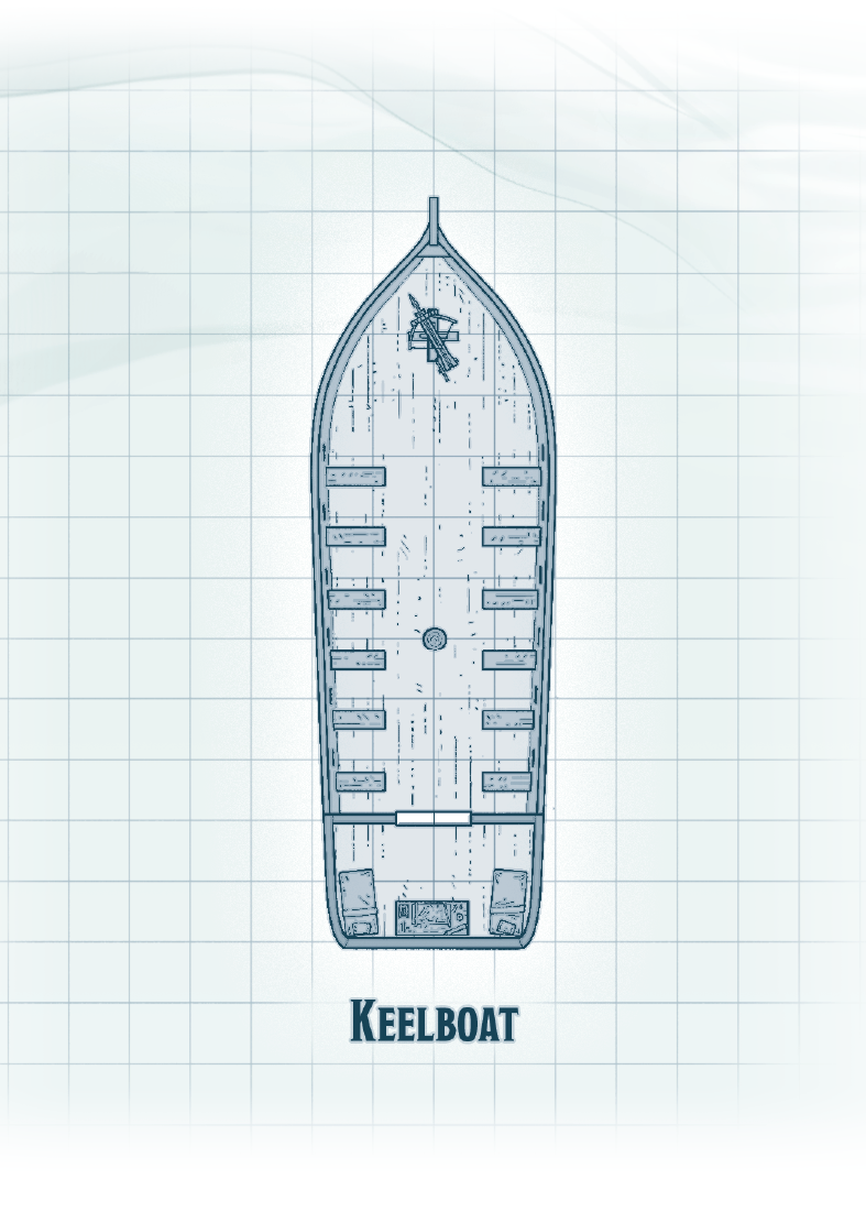 A keelboat requires 1 crew member to operate smoothly. If the characters are guests on a keelboat, the crew consists of 1 captain who has the statistics of a bandit captain with proficiency with water vehicles.